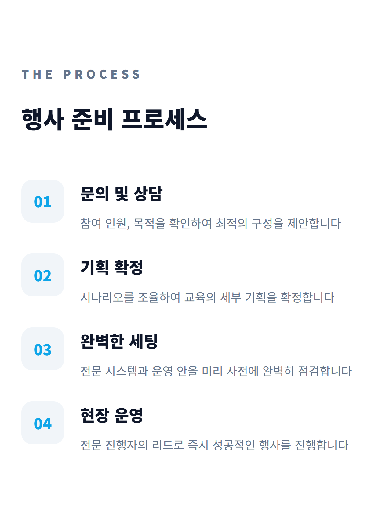 행사일 기준 30일 이전 취소 시 : 취소 수수료 없음